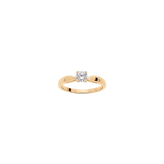 Bague solitaire en plaqué or et oxyde de zirconium, taille 56