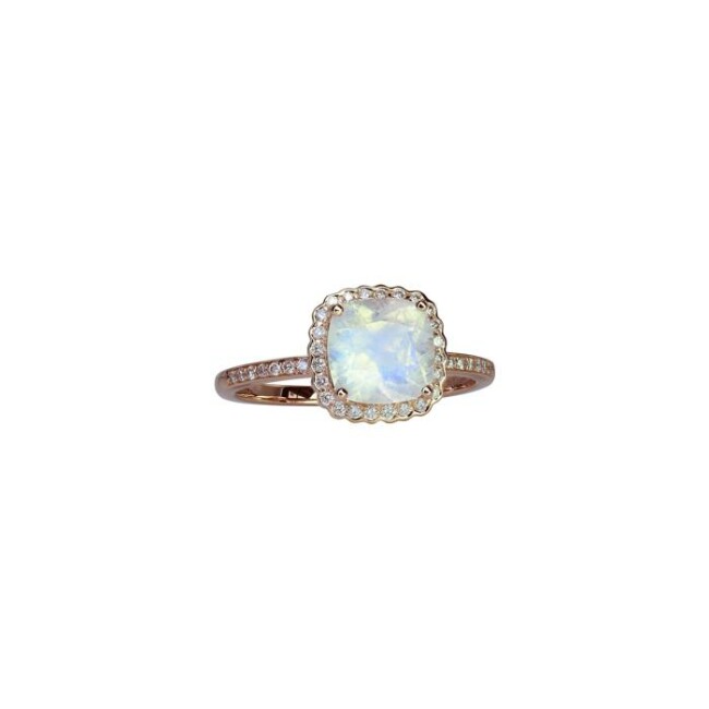 Bague Isabelle Langlois en or rose, pierre de lune et diamants