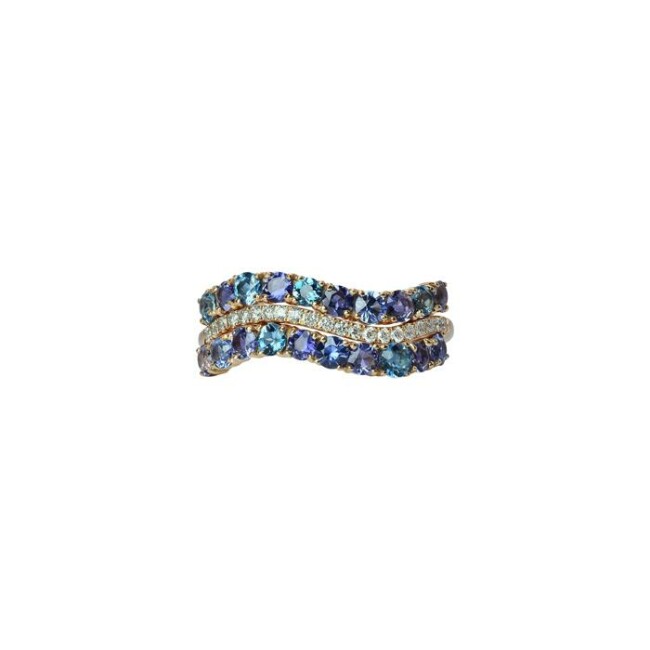 Bague Isabelle Langlois en or rose, topazes, iolites, saphirs et diamants