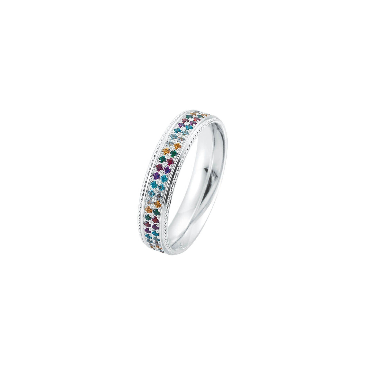 Alliance tour complet en or 585 ‰ effet perlé avec 2 rangs diamants de couleur.