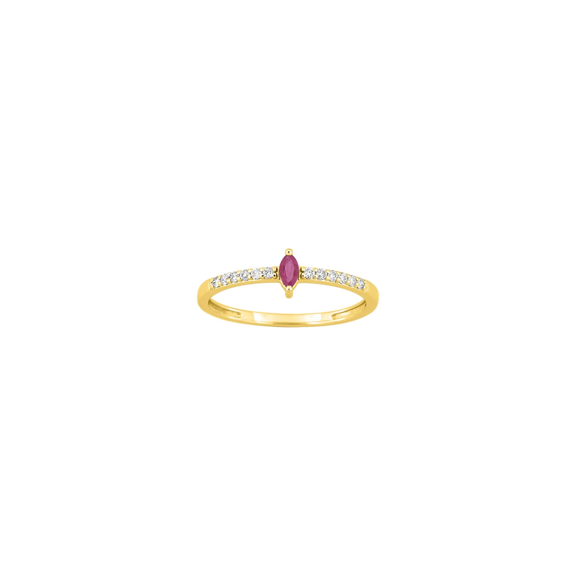 Bague en or jaune, diamant 0.10ct et rubis Description détaillée