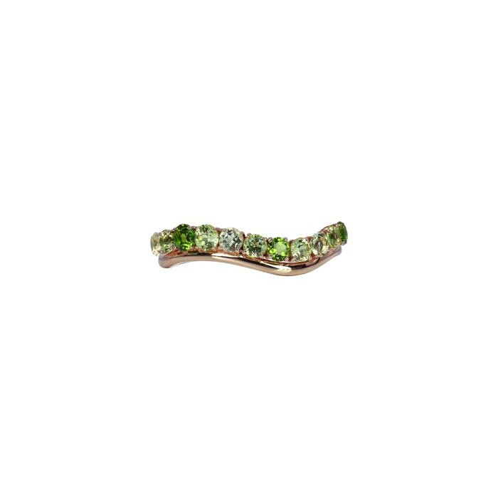 Bague Isabelle Langlois en or rose, diopsides, quartz et péridots Description détaillée