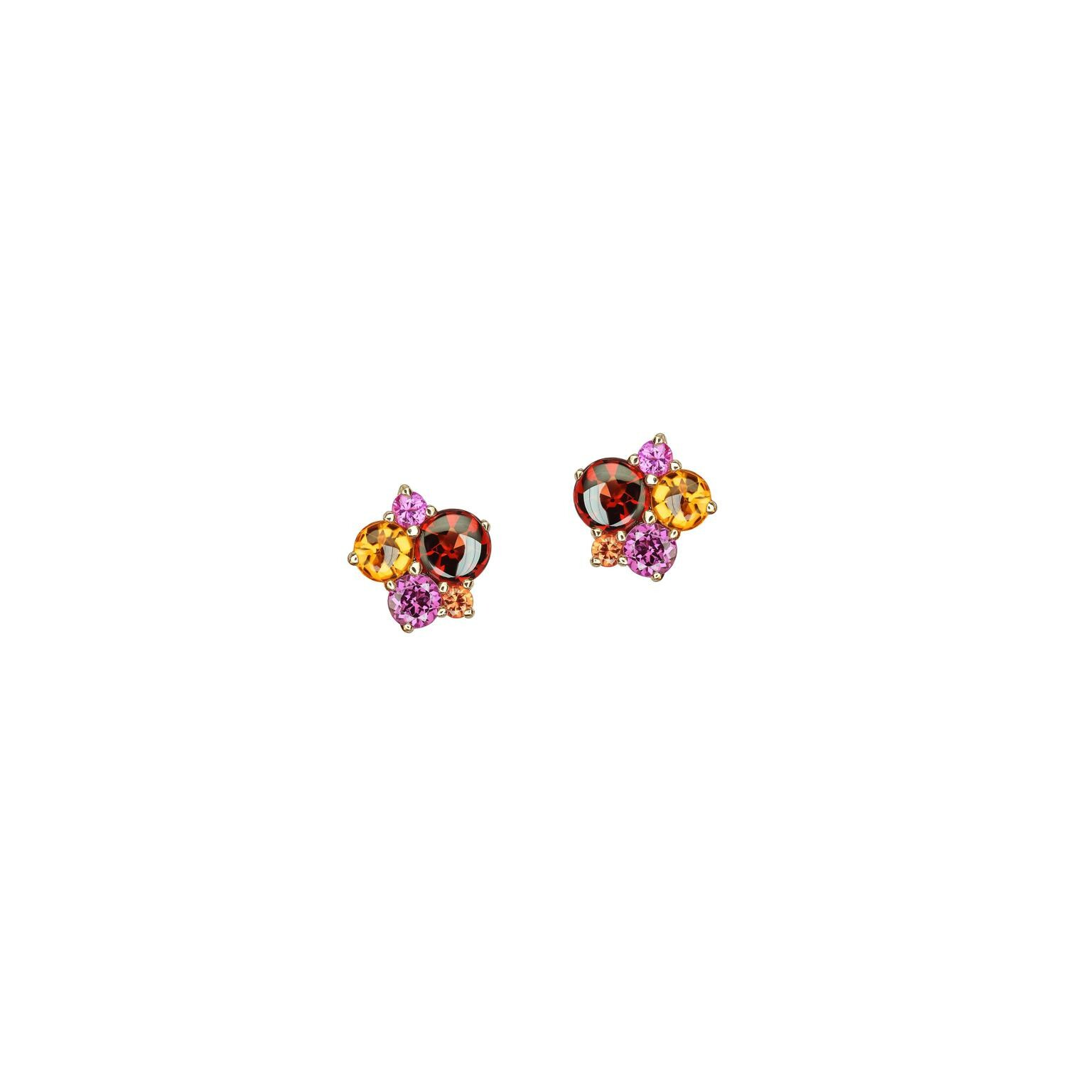 Boucles d'oreilles Isabelle Langlois en or rose, grenats, citrines, rhodolites et saphirs Description détaillée