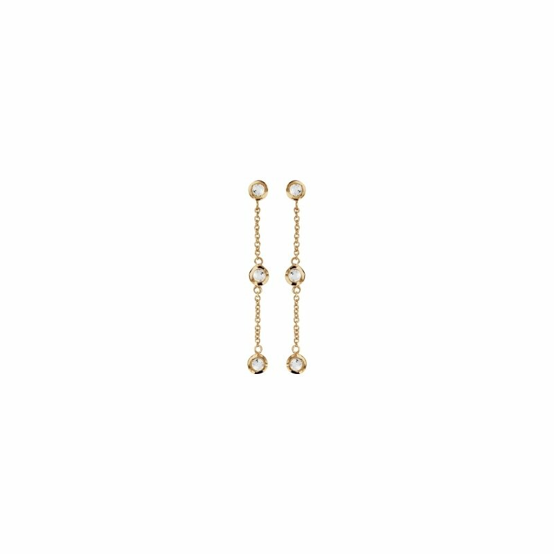 Boucles d'oreilles pendantes en plaqué or et serties de 3 pierres blanches synthétiques Description détaillée