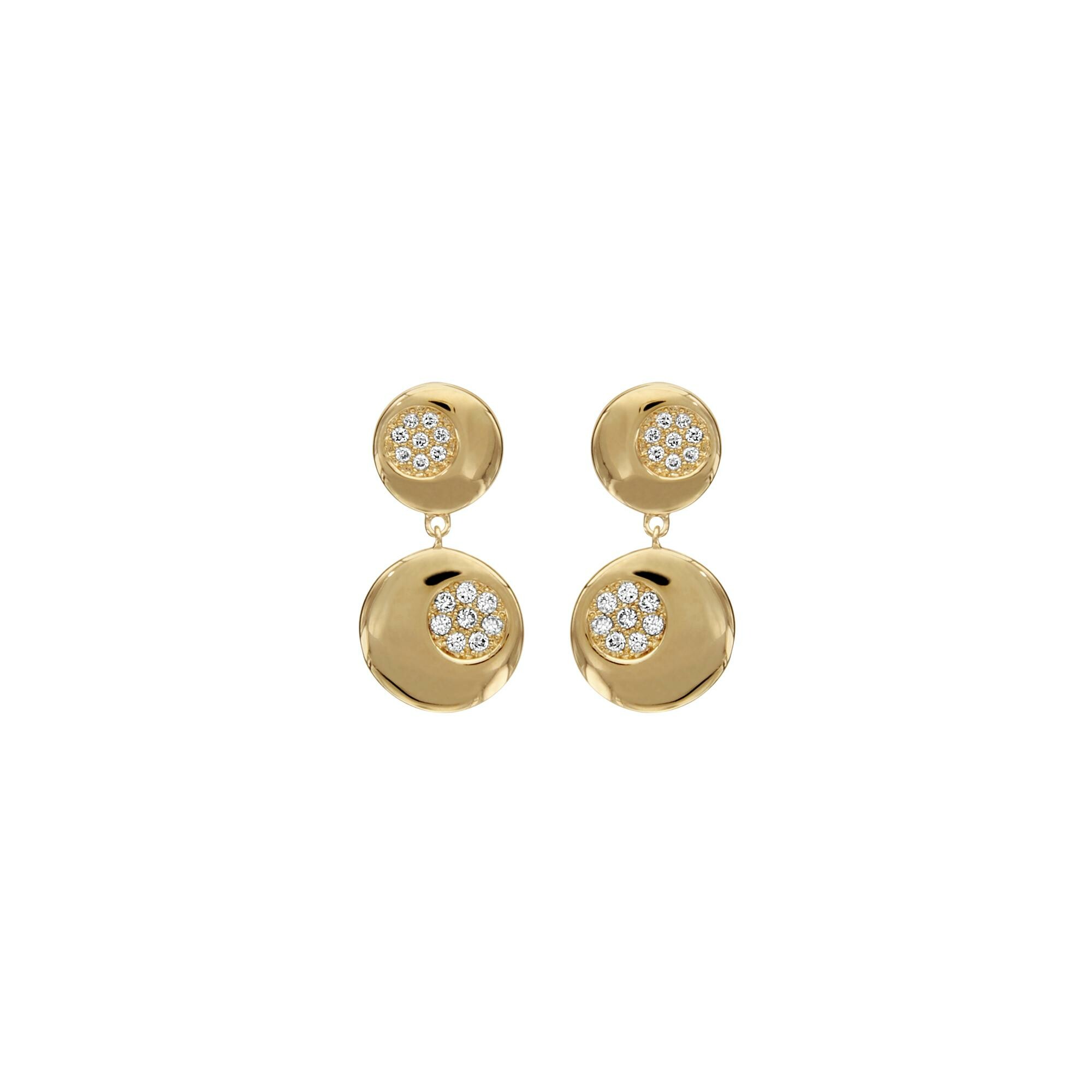 Boucles d'oreilles tige plaqué or 2 disques oxydes blancs sertis Description détaillée