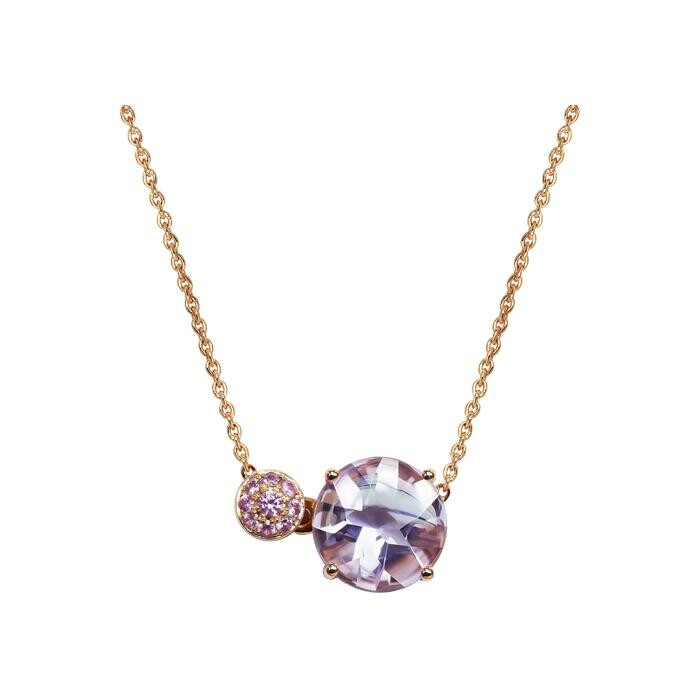 Collier Isabelle Langlois en or rose, améthyste rose de france et saphir Description détaillée