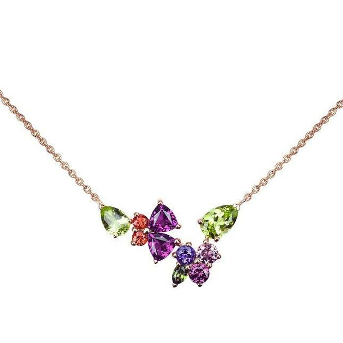 Collier Isabelle Langlois en or rose, péridots, rhodolites, tourmalines, améthystes et saphirs Description détaillée