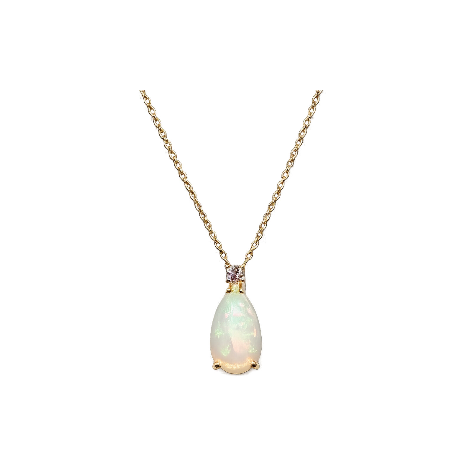 Collier Opale & diamant or rose Description détaillée