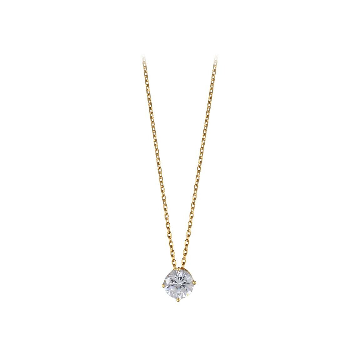 Collier plaqué or pendentif rond pierre synthétique blanche 45cm Description détaillée