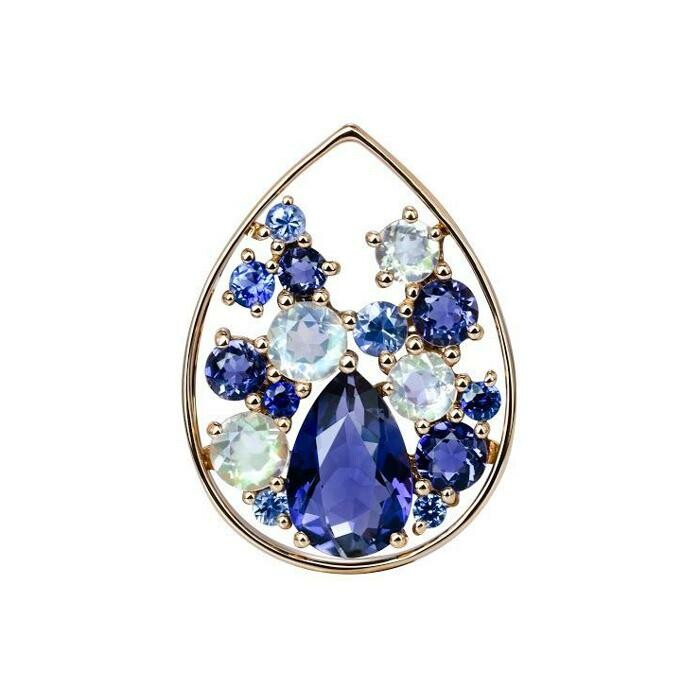 Pendentif Isabelle Langlois en or rose, iolites, pierres de lune et saphirs Description détaillée